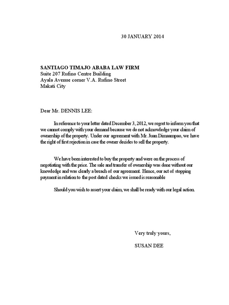 Reply Demand Letter from imgv2-2-f.scribdassets.com How to write letter for tenant prev pdc cheque are finish & demanding new pdc from tenant?~how to write letter for tenant prev pdc chequ. Letters to business partners are letters you write to people with whom you have some degree of involvement with their business dealings. A response to demand letter is a formal written reply to a demand for payment. Letters and postcards weighing not more than 2 kilograms can be classified as ordinary (charged basic 7. Reply email samples for different situations (several examples). But before you write an you may draft a letter with letter of demand as the title. An authorization letter is a document that permits the representative to accomplish tasks on behalf how to make an authorization letter in the philippines: Consider the following important points carefully.